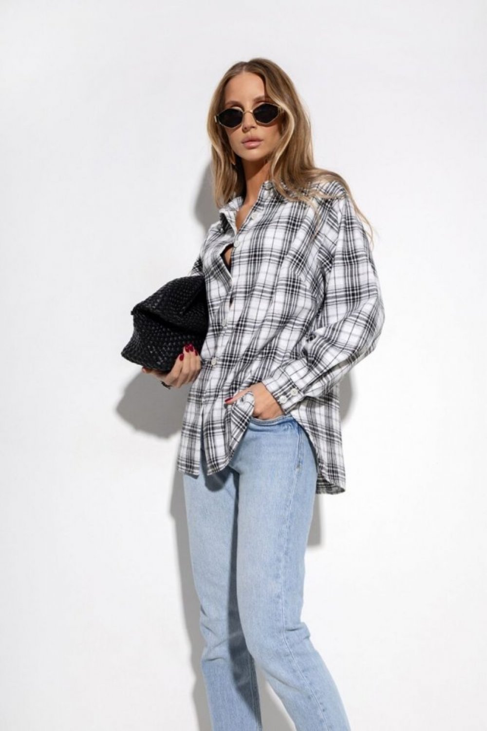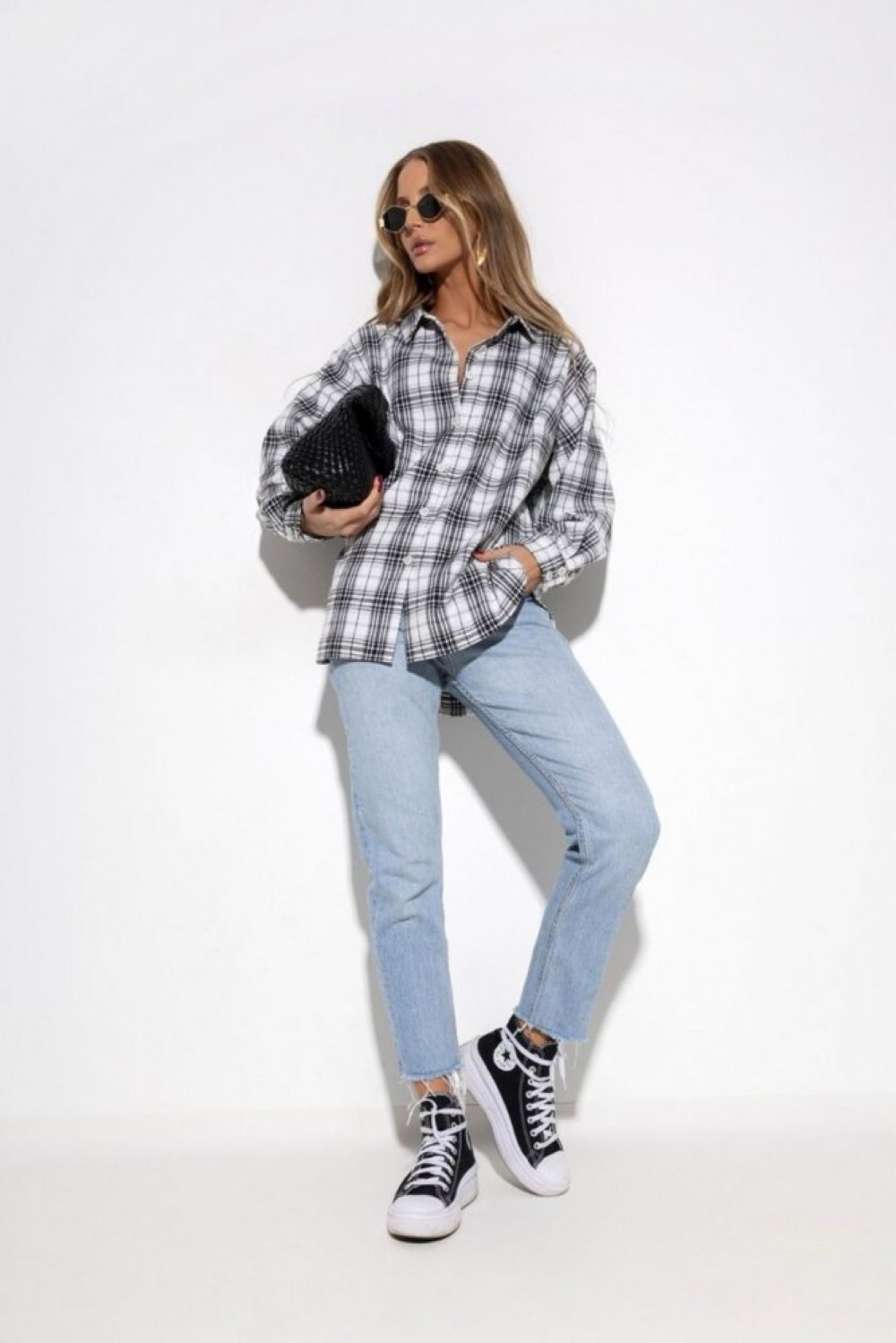 Koszula bawełniana oversize w kratę biały|czarny