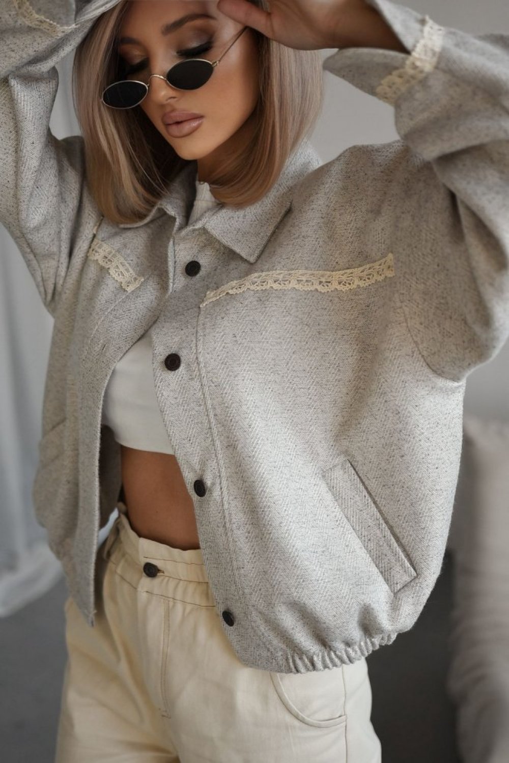 Kurtka MARLA z tkaniny w jodełkę