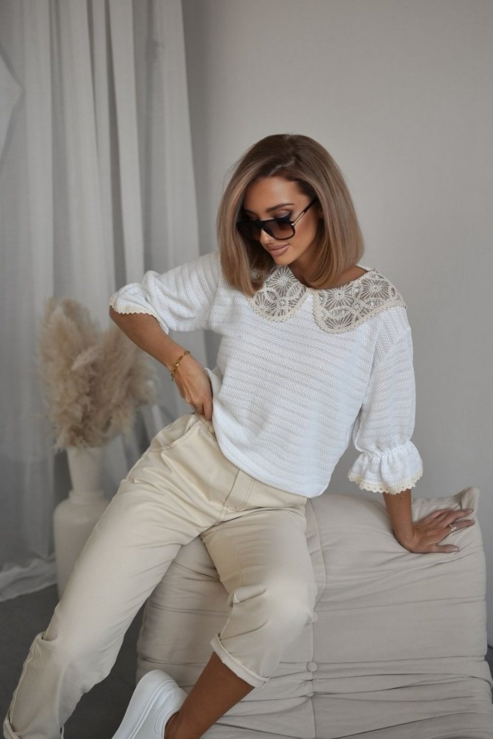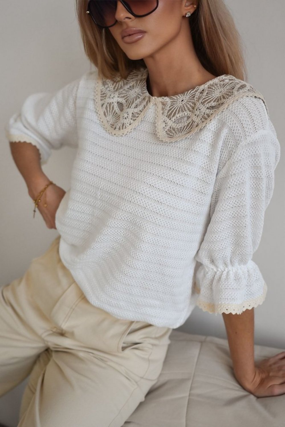 Kołnierzyk z beżowej koronki
