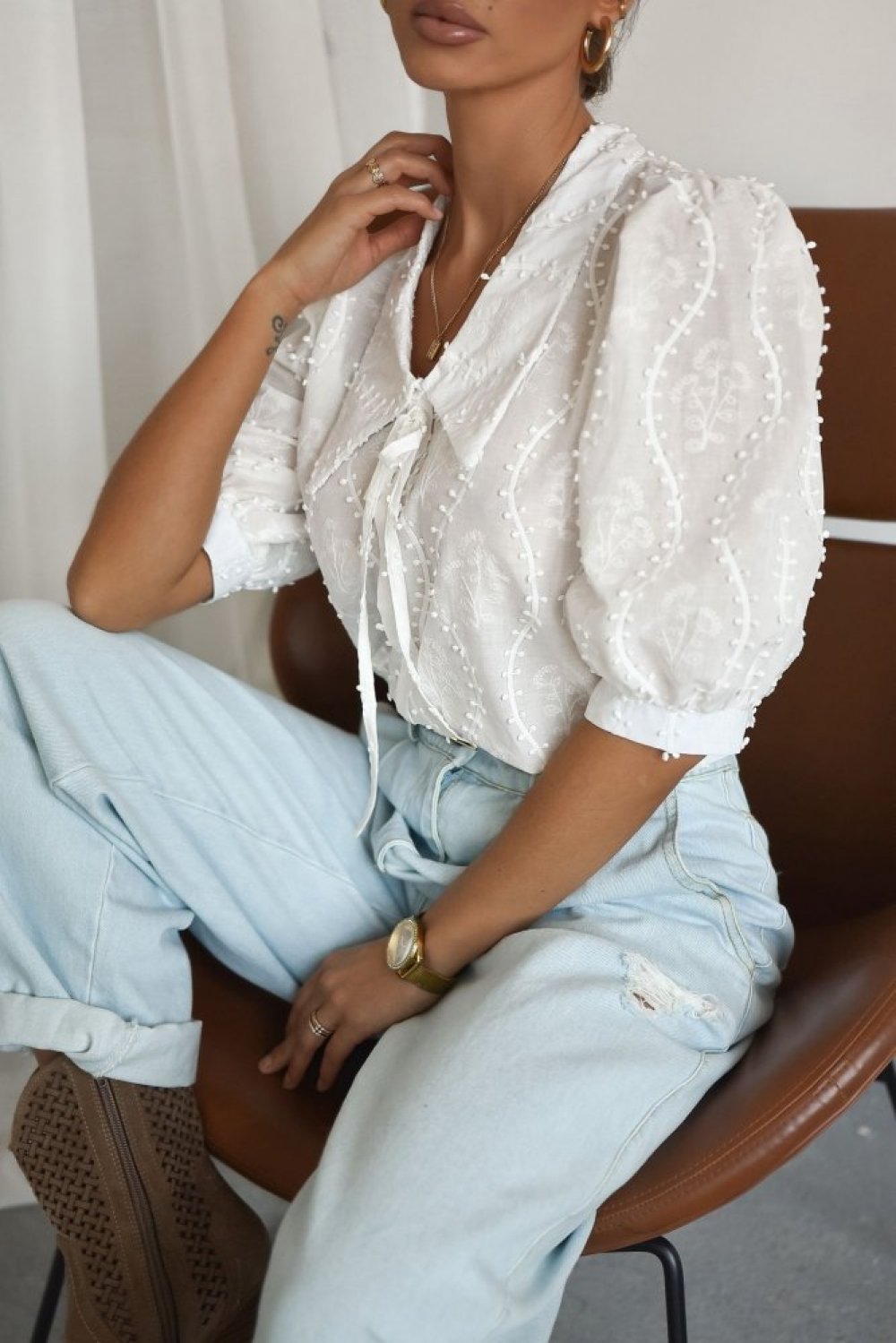 Bluzka z haftem MONICA biała